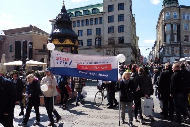 Tusinder var på gaden i 45 lande i weekenden for at protesterer mod de igangværende forhandlinger om en frihandelsaftale mellem USA og EU, TTIP. Der blev bl.a. demonstreret i 200 tyske byer, i Østrig, Belgien og Finland.