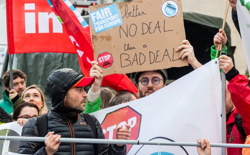 EU’s transportministres kompromis om vejpakke er et fremskridt i forhold til oplægget, men langt fra socialt nok, mener det Europæiske Transportarbejderforbund som mandag demonstrerede i Bruxelles